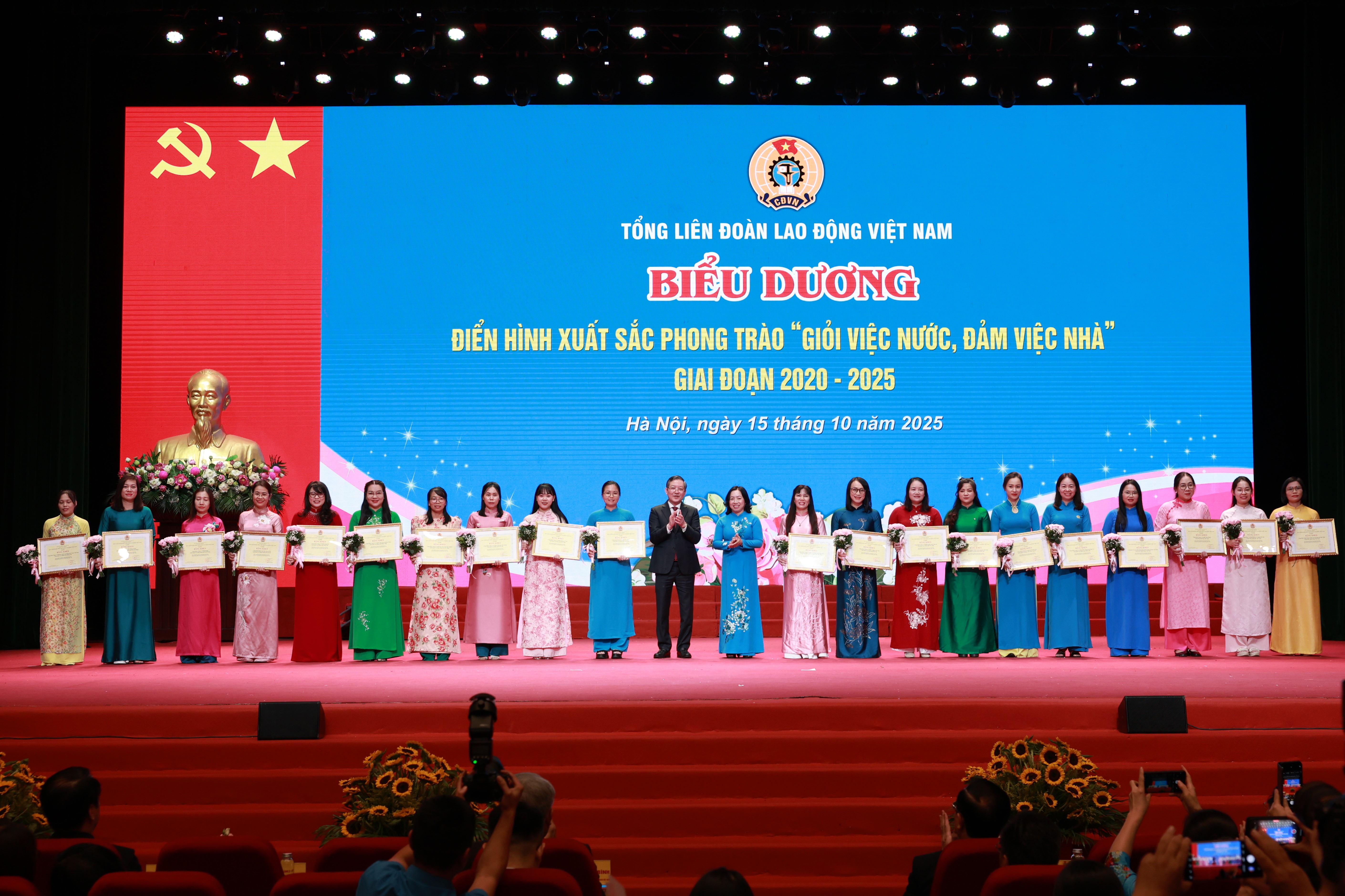 Tối 15/10, tại Cung Văn hóa Lao động Hữu nghị Việt Xô, Tổng Liên đoàn Lao động Việt Nam long trọng tổ chức Lễ trao tặng Giải thưởng "Nữ đoàn viên Công đoàn năng động, sáng tạo, trách nhiệm" lần thứ I và sơ kết, khen thưởng phong trào thi đua "Giỏi việc nước, đảm việc nhà" giai đoạn 2020-2025.